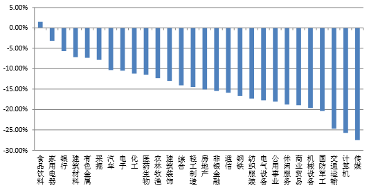 前三季度申萬一級行業指數漲跌幅