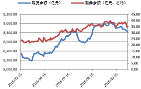 隨著指數的上漲,融資余額也企穩回升。在9月份突破9000億,并于9月8號達到9037.50億元,創半年多以來的最高值。隨后,融資余額有所回落。截止9月29日,兩融余額為8857.99億元,其中融資余額8823.69億元,融券余額34.30億元。