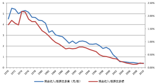 1975年美國傭金自由化后傭金率持續下滑