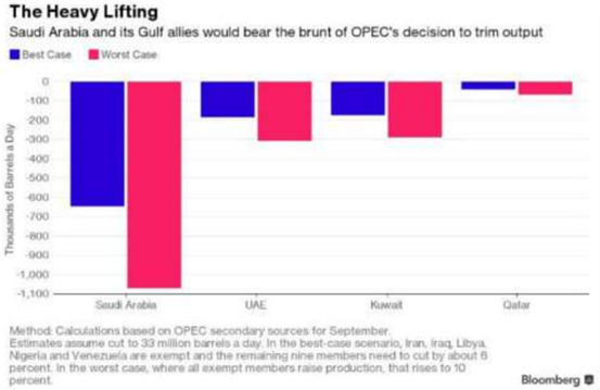 沙特及其盟國將承受減產的大部分重擔