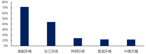 固廢處理處置行業內各標的 2016Q1-3 歸母凈利潤增長情況(單位:%)