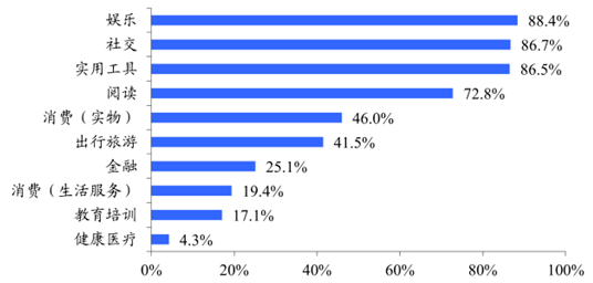 移動端應用閱讀應用排名前列,人們的閱讀方式悄然變化。隨著互聯網、移動終端和云存儲技術的發展,閱讀渠道日益多元化,人們可以隨時隨地進行閱讀,并體驗到多終端無差別的閱讀體驗。據分析,移動端用戶使用的應用閱讀應用僅次于娛樂、社交和實用工具類 APP,滲透率達到 72.8%,人們的閱讀方式不再局限于紙質媒介,越來越多使用在線閱讀,包括移動端和 PC 端,其中移動端由于其得天獨厚的便捷性,成為越來越廣泛的閱讀方式之一。