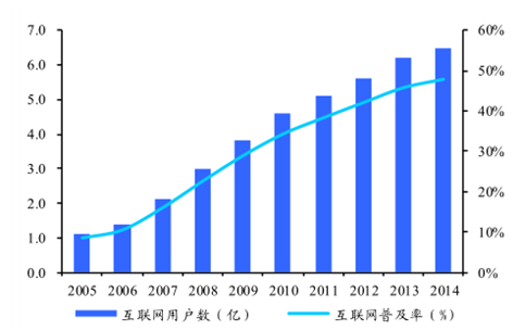 2005~2014 互聯網用戶數及普及率快速提升