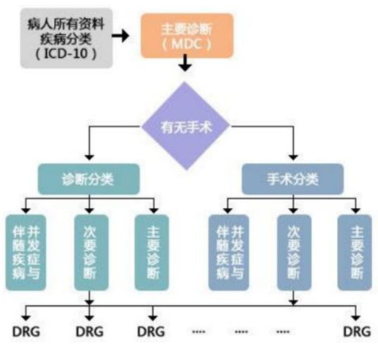 DRGs,全稱為 Diagnosis Related Groups,也可以被稱為“打包付費”,即根據患者年齡、疾病診斷、合并癥并發癥、治療方式、病癥嚴重程度以及療效等多種因素,將診斷相近、治療手段相近、醫療費用相近的住院患者,分入若干病組;然后,醫院與保險機構通過談判,合理確定各疾病診斷組的付費標準,保險機構按此協定的標準向醫院支付費用。