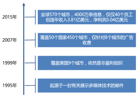 Craigslist :簡單純粹的分類信息社區 。Craigslist 是一家充滿傳奇色彩的互聯網公司,多年來與 facebook、ebay 等知名網站一樣,是美國人民瀏覽最多的網站之一。截至 2015 年,Craigslist 僅有 40 余名員工,且并未上市,就取得了覆蓋全球 570 個城市,年收入 3.81 億美元,凈利潤率高達 90%。令人詫異的是,Craigslist 的網頁風格自成立以來幾乎沒有發生變化,這讓生活在日新月異的互聯網時代的都感到匪夷所思,拋開 Craig Newmark 所謂的互聯網情懷論不談,通過分析Craigslist 來形成對國內分類信息平臺的借鑒意義。
