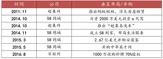 2012 年后,隨著 O2O 電商的崛起和對信息真實性的考量,58同城和趕集網紛紛轉戰 O2O 市場,向垂直領域進軍,形成產業閉環,由于 O2O 多為自營,58 同城的經營模式進一步加重。而百姓網則堅持在線信息共享的輕資產模式,只針對某些細分行業進行深入。分類信息市場得到經營模式逐漸發生改變,行業格局也由惡性競爭向差異化競爭轉變,百姓網與 58 同城、趕集網的關系逐漸演變成上下游的關系。