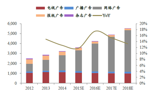 2017年中國廣告市場規模預測及綜藝制作數量預測