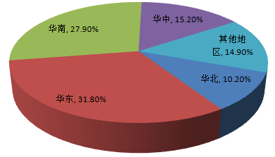 從我國家紡行業企業區域分布情況來看,行業內企業主要分布于華東和華南地區,兩者占比之和接近60%。