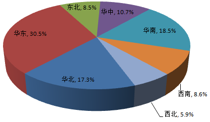 2015年我國電吹風行業消費市場區域集中度