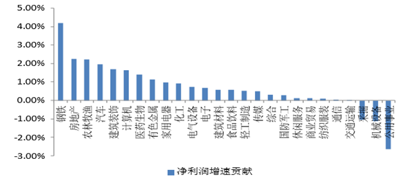 -3.2 行業利潤表分行業表現 分行業看,前三季度對全行業利潤貢獻最大的行業主要來自鋼鐵、房地產、農林牧漁、汽車、建筑裝飾、計算機、醫藥生物、有色金屬、家用電器、化工、電氣設備、電子、建筑材料、食品飲料等,這些行業特點一是成長性行業如計算機、醫藥;二是終端消費型如房地產、汽車、家電;三是漲價下的周期性景氣回升如鋼鐵、農林牧漁、化工和建筑材料;四是由營改增推升業績,主要是建筑裝飾,五是搶裝潮下處在景氣高點的電氣設備。而公用事業、機械設備、采掘等行業利潤則仍呈下滑趨勢。其中,公用事業主要是煤炭價格上漲和上網電價下行下火電盈利下滑,機械設備則內部分化較為嚴重,工程機械快速增長 50%,但受上游煤炭和原油等景氣低迷拖累,冶金設備等下行較明顯;采掘行業分化同樣嚴重,主要由于2016年油價整體較去年低,油服類公司利潤同比大降,另一方面,三季度在煤炭價格快速上漲下,煤炭行業利潤較去年同期大幅上漲125%。