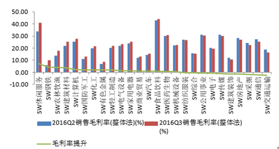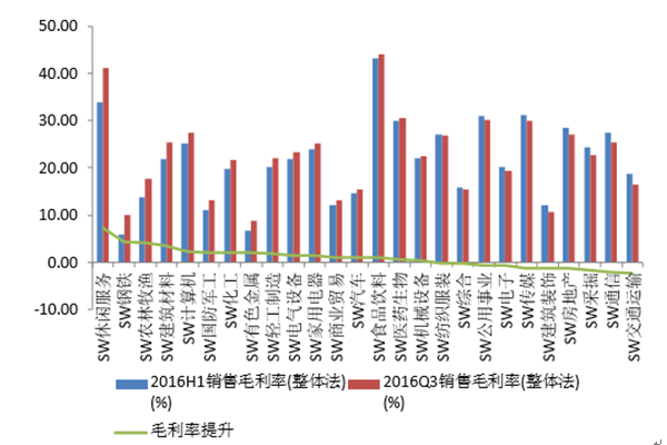 從環比看,毛利率提升較為顯著的是休閑服務、鋼鐵、農林牧漁、建筑材料、計算機、國防軍工等。休閑服務主要是三季度是傳統旅游旺季、鋼鐵、建筑材料則主要還是受益產品漲價。
