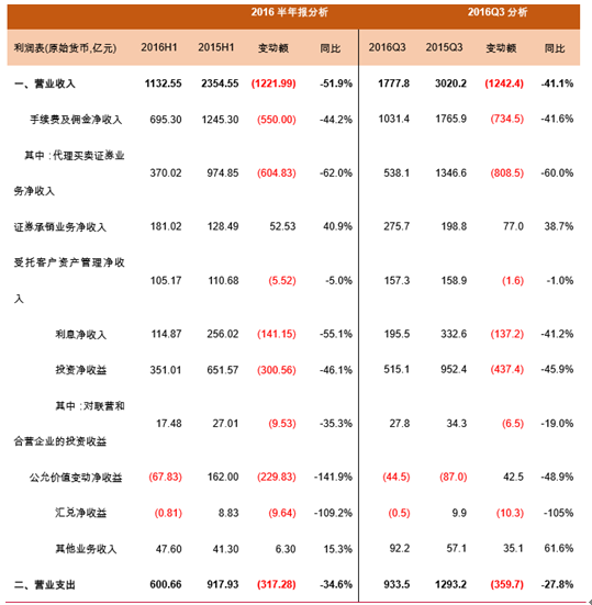 核心提示:2016年前三季度,受去年高基數和市場下行影響,上市券商整體營收和凈利潤分別為1777.8 億和 670 億元,分別大幅下降 41.1%和 48%,但收益三季度二級市場回暖,降幅較二季度分別收窄10.8和12.1個百分點。若考慮浮虧等因2016年前三季度,受去年高基數和市場下行影響,上市券商整體營收和凈利潤分別為1777.8 億和 670 億元,分別大幅下降 41.1%和 48%,但收益三季度二級市場回暖,降幅較二季度分別收窄10.8和12.1個百分點。