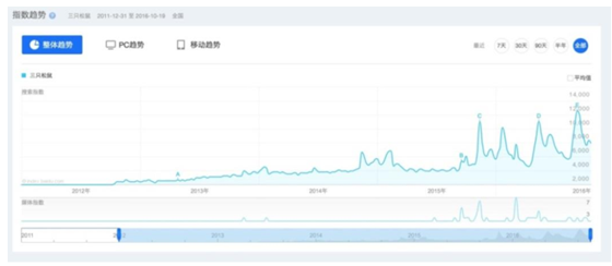 三只松鼠百度指數迅速增長