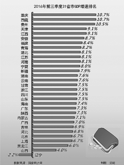 2016年只剩下30余天,從已公布的各項數據看,全年6.5%以上的經濟增速可期。截至11月22日,31個省份已陸續公布各自前三季度經濟增速及相關指標。西藏、重慶、貴州、天津、江西、安徽、福建等26個省份GDP增幅“跑贏”全國,其中有23個省份GDP增速超過了7%。