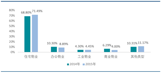 一方面,住宅仍是房地產增量市場的主力軍。根據國家統計局數據,2015年全國住宅竣工面積達 7.38 億平方米,占 2015 年全國房屋竣工面積 10.00 億平方米的 73.75%。另一方面,由于社區經濟興起,管理住宅物業的價值進一步凸顯,行業百強企業的兼并收購也以住宅物業管理項目為主,助推了行業百強企業中的住宅物業的占比提升。