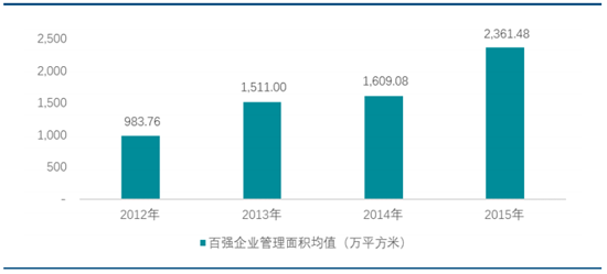 中國物業管理行業百強企業管理面積均值情況