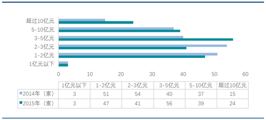 截止 2014 年底,全國 10.5 萬家物業服務企業平均管理面積僅為 15.67 萬平方米;根據中國物業管理行業 TOP100 研究組發布的《2016 中國物業服務百強企業研究報告》,行業百強企業在 2014 年底的管理面積總值占全國物業管理面積僅為 19.50%,行業呈現高度分散態勢。但近年來行業領先企業快速發展,行業集中度逐漸提升。行業百強企業在 2015 年底的管理面積總值占全國物業管理面積的28.42%,同比提升 8.92 個百分點。 在行業百強企業中,2015 年營業收入超過 10 億元的物業服務企業達 24 家,同比增加9 家,集中化趨勢明顯。