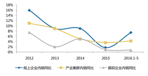近年家紡行業(yè)內(nèi)銷產(chǎn)值增速情況