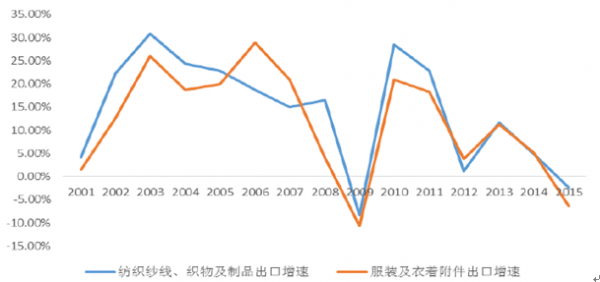 近年來我國紡織服裝出口增速