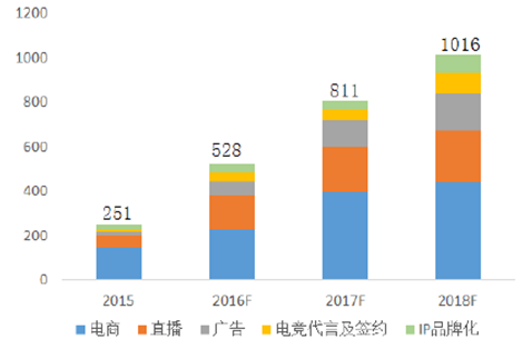 2016-2018 年中國網紅產業規模預測