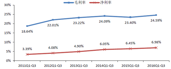 2011-2016年以來家電行業(yè)凈利率逐年提升