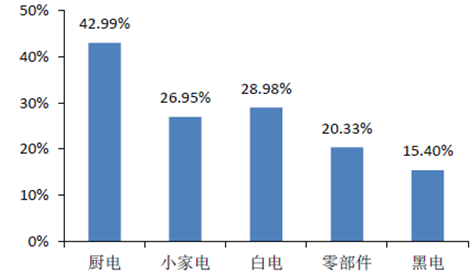 2016Q1-Q3廚電板塊毛利率水平最高,為42.99%