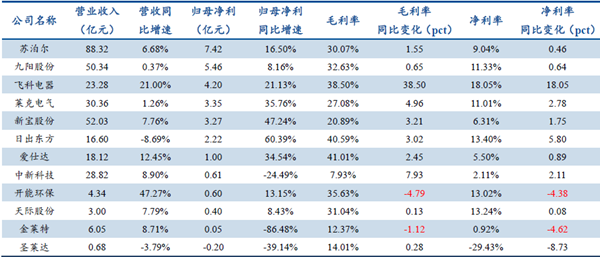 2016Q1-Q3主要小家電企業(yè)業(yè)績情況