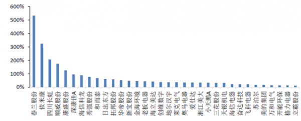 2016Q1-Q3有34家家電公司歸母凈利潤同比增速超過10%