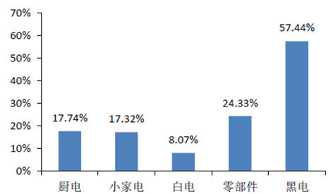 2016年前三季度廚電子行業(yè)營收同比增長10.98%,高于其他子行業(yè),而歸母凈利率方面,黑電子行業(yè)歸母凈利潤同比增速最快,達(dá)到57.44%。