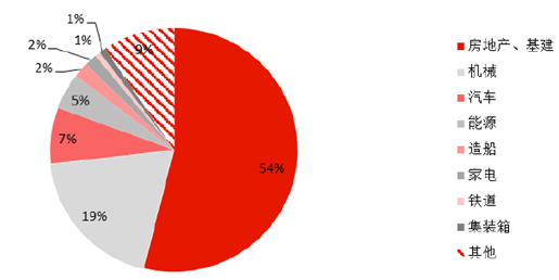 從鋼鐵消費端看,房地產及基建的粗鋼消費量占比達到54%以上,并且房地產在經濟周期中扮演著十分重要的角色。汽車、家電等領域盡管粗鋼消耗量不大,但由于噸鋼價格高,相關產品產值較高,也是我們需要關注的領域。