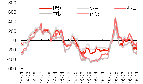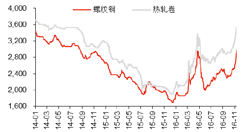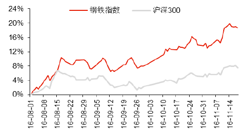 2016 年8 月-2016 年11 月鋼鐵指數走勢