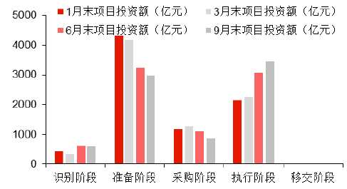 1、3、6、9 月末各階段示范PPP 項目投資對比