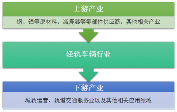 輕軌車輛產業鏈上游主要是輕軌車輛制造企業的原材料及零部件供應商,主要包括:鋼材、不銹鋼、鋁型材、減震器、彈性元件等。產業鏈中游為輕軌車輛制造商,裝備制造業是國家重點支持的產業領域,涵蓋的專業和技術產品多。產業鏈的下游主要是城軌運營以及其他相關應用領域。單純從運營管理本身來講其產業附加值較低,經濟效益較差,但其社會效益優勢明顯。