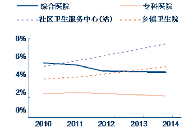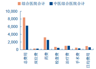 由于藥材成本和治療方式不同,中醫的治療費用相對于西醫較低。數據顯示,2014年我國綜合醫院平均的門診費用為224.9元,而中醫綜合醫院的門診費用為195.6元,較綜合醫院平均低15%左右;住院費用的差距更為明顯,2014年我國綜合醫院平均的負擔為8397.3元,而中醫綜合醫院僅為6235.0元,較綜合醫院平均低34.7%。我們認為中醫相對較低的治療費用可以有效緩解基層居民就醫的經濟負擔,也更容易受到基層市場歡迎。