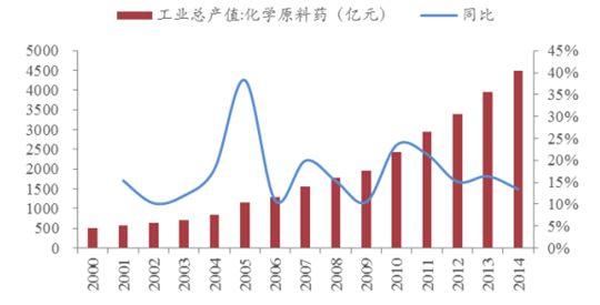 我國化學(xué)原料藥產(chǎn)值及同比增長率