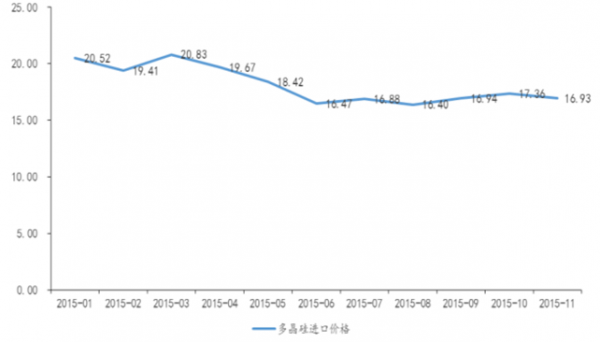核心提示:2015年,我國金屬硅各品種平均價格下滑幅度均在10-15%之間,而且全年的最低價格在年底。下游產品價格快速下滑、全年供應持續增加和海外市場需求減少是導致我國金屬硅市場供應過剩、價格進一步走低的主要原因。多晶硅價格走勢圖資料來源:公開資料整2015年,我國金屬硅各品種平均價格下滑幅度均在10-15%之間,而且全年的最低價格在年底。下游產品價格快速下滑、全年供應持續增加和海外市場需求減少是導致我國金屬硅市場供應過剩、價格進一步走低的主要原因。