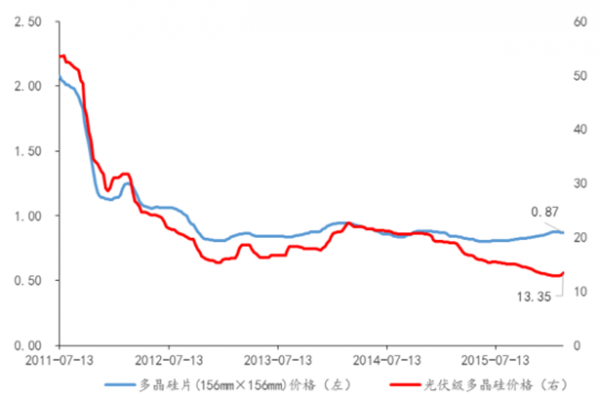 2)人民幣貶值造成進口多晶硅的成本增加,進而使國內多晶硅生產商間接受益。