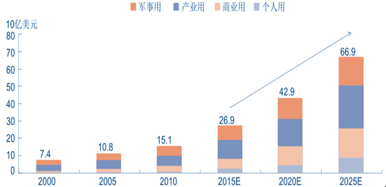 日益老齡化的人口結(jié)構(gòu)、不斷上漲的人工成本和全球化競爭是拉動(dòng)機(jī)器人市場快速成長的重要因素。2015 年世界智能型機(jī)器人市場約為 269 億美元,今后 10 年間,CAGR(年平均成長率)將達(dá)到 9%,至 2025 年世界機(jī)器人市場將高達(dá) 669 億美元。統(tǒng)計(jì)數(shù)字顯示,中國是全球增長最快的工業(yè)機(jī)器人市場,從 2010 年到 2016 年,中國工業(yè)機(jī)器人的總供給量年均增長速度約為 40%。