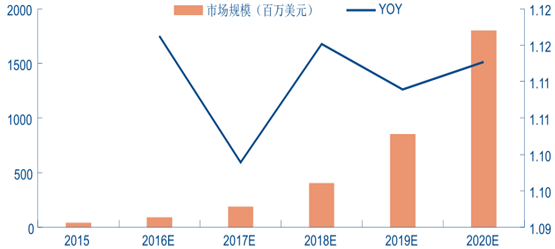 2015-2020 年康復(fù)機(jī)器人市場規(guī)模預(yù)測(百萬美元)