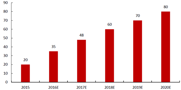汽車智能化推動(dòng)T-box發(fā)展。T-box是車聯(lián)網(wǎng)系統(tǒng)中的智能車載終端,可實(shí)時(shí)獲取車況路況等信息數(shù)據(jù),并與車輛、云平臺(tái)等信息終端進(jìn)行數(shù)據(jù)交互,可實(shí)現(xiàn)V2X功能,其后期還可為整車廠提供研發(fā)數(shù)據(jù)積累、售后服務(wù)故障解決等服務(wù)。目前T-box 產(chǎn)品價(jià)值相對(duì)較高,在傳統(tǒng)乘用車領(lǐng)域應(yīng)用滲透率較低,市場空間廣闊;隨著前裝終端產(chǎn)量和市場競爭加劇,T-box價(jià)格和成本將逐步下降,市場規(guī)模將顯著提升。據(jù)水木清華研究中心測(cè)算,2020年國內(nèi)T-box市場規(guī)模將達(dá)到80億元。國內(nèi)T-box 供應(yīng)商主要有慧翰股份、興民智通控股的英泰思特等。