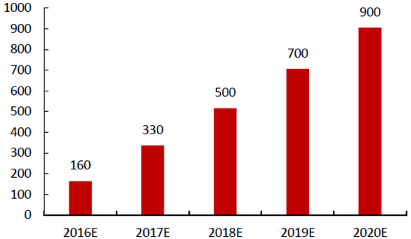 整車配套需求強(qiáng)烈,ADAS 前后裝市場有望迎來高速增長。預(yù)計(jì)2020 年中國乘用車車產(chǎn)銷規(guī)模達(dá)到近3000 萬輛,ADAS 新車前裝滲透率達(dá)50%,單價(jià)6000 元,則2020 年中國ADAS 系統(tǒng)前裝銷售額將達(dá)900 億元,未來五年ADAS 系統(tǒng)的前裝銷售總額為2627.6 億元。近年來全球和中國汽車保有量增速均進(jìn)入穩(wěn)步增長階段,預(yù)計(jì)至2020 年,全球汽車保有量將超過14 億輛,中國汽車保有量將達(dá)到2.64 億輛,假定2020 年全球存量市場(除中國)滲透率為25%,中國存量市場滲透率為10%,ADAS 系統(tǒng)存量市場將達(dá)1.8 萬億,市場空間潛力大,企業(yè)獲利空間可觀。
