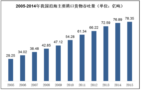 自 2005 年以來(lái),我國(guó)沿海主要港口貨物吞吐量情況如下: