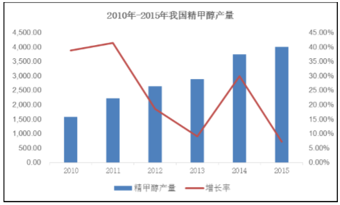自 2010 年以來(lái),我國(guó)精甲醇產(chǎn)量情況如下: