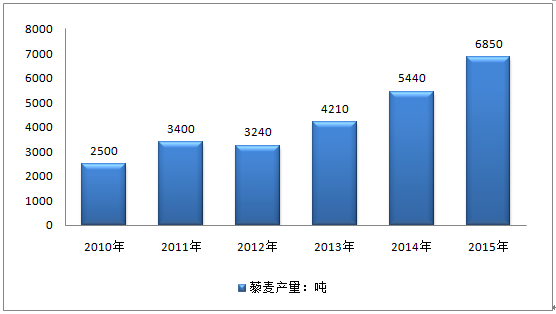 2010-2015年中國藜麥行業(yè)產(chǎn)量情況