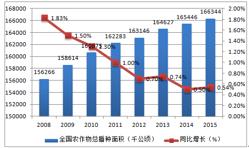 2008-2015年農(nóng)作物總播種面積統(tǒng)計