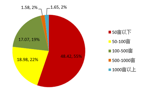 家庭農場的規模以 50畝以下為主(萬)