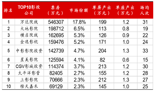 TOP10 影投公司運營效率情況(截至 2016 年 11 月 12 日)