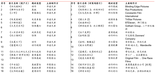 2017年的國產片中不乏精品制作和明星級 IP,靠口碑效應跑出單片黑馬的機會或會增加。好萊塢影片中續作占比超過一半,有效鎖定了核心粉絲的觀影需求,為2017年的引進 片票房市場輸送利好!峨娪爱a業促進法》突出了簡政放權和對國產電影的貿易保護立場, 一方面將推動國產片供給增加,倒逼產業主體和資本方將賽道轉移至對內容的精耕細作; 另一方面在引進片談判中增加中方的博弈籌碼,或將刺激更多的中美合拍片出現。此外, 2017年分賬片配額限制如果放寬也有望增厚票房業績。