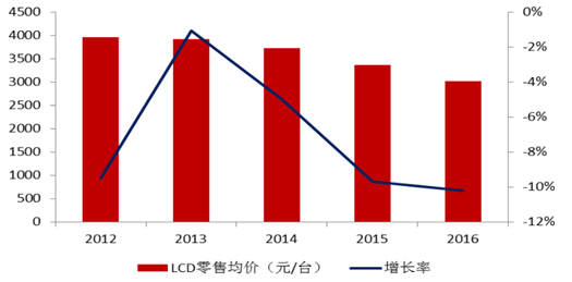 2016年1~9月全國彩電銷量規模為3546萬臺,同比增長7.6%; 銷售額 1063 億元,同比下降 4.6%;預計2016 年四季度彩電市場的零售量規模將達 1529 萬臺,同比增長 7.2%;2016 年全年彩電零售量規模將達 5075 萬臺,同比增長 7.5%。行業零售均價為 3020 元,同比下降 10.2%;盡管行業 銷量明顯增長,但售價跌幅過大,導致銷售額下滑。零售額達 1063 億元,同比下降 4.0%以上。