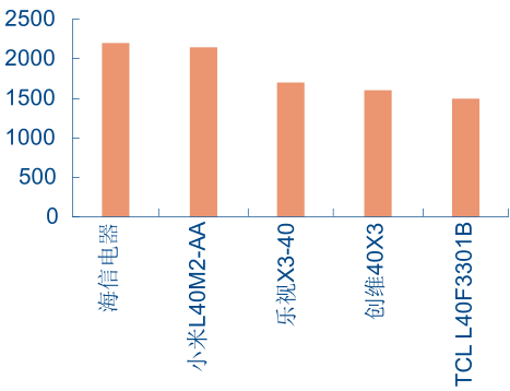不同品牌 40 寸線上主銷型號均價對比(單位:元)
